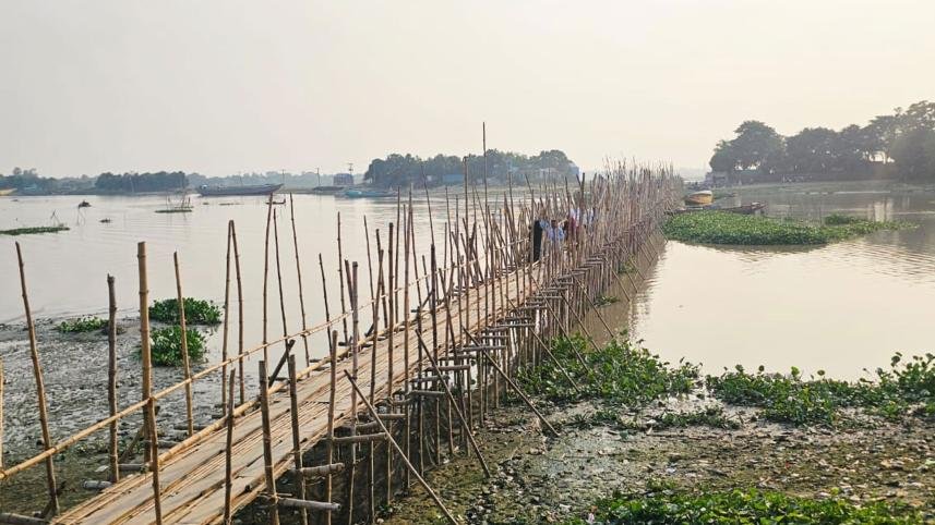 For over two decades, the local community has been utilizing a bamboo bridge spanning 900 feet to traverse the river, resulting in significant delays in reaching destinations, particularly those situated in the upazila headquarters, approximately 15 kilometers away.