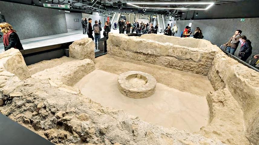For a mere 1.5-euro fare, visitors can explore the underground museum within the station, housing a diverse array of items such as ceramic vessels, lamps, bronze figurines, and a wooden sword. Notably, remnants of a bathhouse from a prosperous Roman household are also on display nearby.